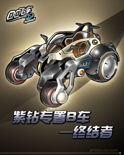 文字介绍:外形狂野霸气,高挑而宽阔的车身、V型的车头、突出的前轮、是他独有的标志,粗犷硬朗中更显尊贵霸气。前卫的车身设计,宛如一位超越时空的战士,拥有着极强的机械感与未来感。它以紫色为色彩,彰显紫钻尊贵的血统,衬托出驾驶者的高贵不凡,无可抵挡! 【终结者】车身厚实、坚硬,防撞能力卓越。它采用世界先进的P75V9铝合金赛车发动机,给予赛车强大的动力输出。车身重量低、转向稳定,抓地力强,灵敏的过弯能力和超强的集气性能,让【终结者】无疑成为赛道上的终极杀手!先进的操控技术,非凡的赛车手感,让您在赛道上所向披靡!