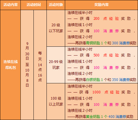 活动2:整点在线、连续在线奖励免费送!