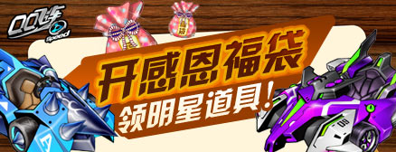 感恩节活动已经启动,让充满幸运的[福袋]带给你满满的奖励和惊喜。还在等什么呢,快快带上你的好友,齐聚飞车世界,一起来收获《QQ飞车》为您准备的极品回馈吧!