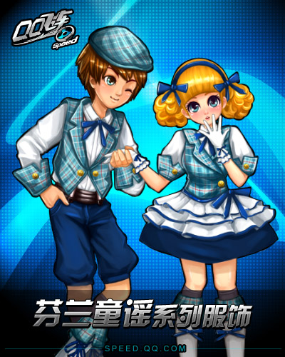 《QQ飞车》芬兰童谣系列包括有女生类:格子上装、长裙、发饰、手套,男生类:上装、下装、发饰。