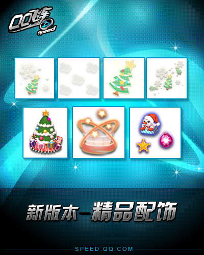 欢乐的圣诞节即将来临,《QQ飞车》也为广大玩家送来了节日的祝福。在新版本“幸运大奖赛”中,丰富多彩的圣诞节配饰将把欢乐的节日气息撒播到飞车世界的每一个角落。圣诞糖果背景、圣诞雪花胎印、圣诞雪花漂移特效、圣诞树挂饰、圣诞幸运炫光、圣诞老人前景任你选择。圣诞夜,让我们一起到《QQ飞车》狂欢吧!