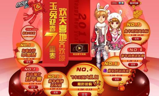 不止这些,还有飞车史上极品宠物等你来秒杀、新春年糕等你砸、挑战红人燃放烟花得豪礼、新春红包大派送等。新年丰厚好礼等你来,飞车伴你过大年!