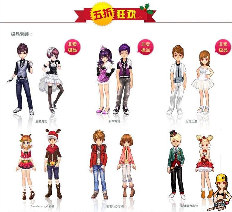 穿上典雅而闪耀的“星随舞动套装”和“靓紫舞动套装”,在圣诞狂欢夜与心爱的Ta共舞一曲爱的华尔兹。“白色之巅套装”,用纯洁的色彩,耀一世界的白。“Female angel套装”与“圣诞魔力套装”让你在圣诞舞会上成为众人焦点。还有“暖暖动心套装”在寒冷的季节里,温暖你的心扉。