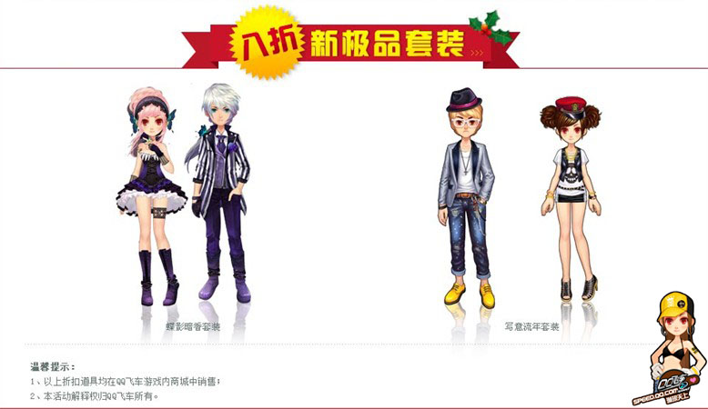 12月23日-12月31日期间,《QQ飞车》年底疯狂大扫货,极品道具五折大狂欢,经典款式大回馈,给你想不到的心动与惊喜,赶紧一起来扫货吧!