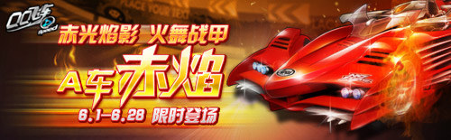 “A车赤焰”风势正猛,狂袭飞车世界。赤光焰影,幻变出火舞战甲。高温来临,舞动你的烈焰飞车热潮吧!“A车赤焰”6月1日-6月28日限时耀目登场极速上市,等你来体验!