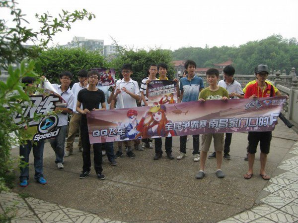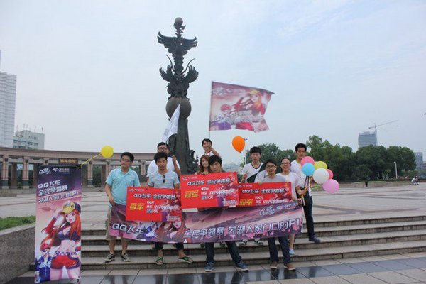 《QQ飞车》全民争霸赛着力打造家门口的F1赛事,引爆暑假,不仅仅是精彩激烈的比赛盛事,更在线下组织参赛者游览当地名胜古迹.安徽赛区组织玩家们到芜湖鸠兹广场,向市民展示获胜后的潇洒与豪迈,江西赛区组织玩家线下参观南昌八一纪念馆,欣赏伟大的英雄烈士。队伍环游八一公园,在丝丝细雨中感受历史名城给予我们的深深震撼。