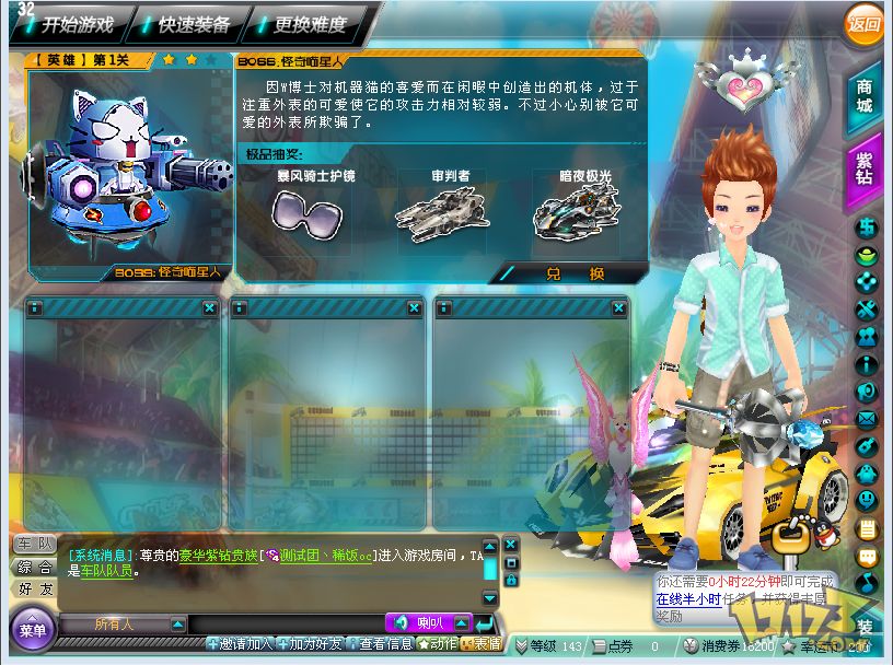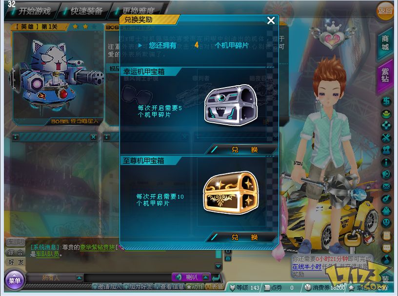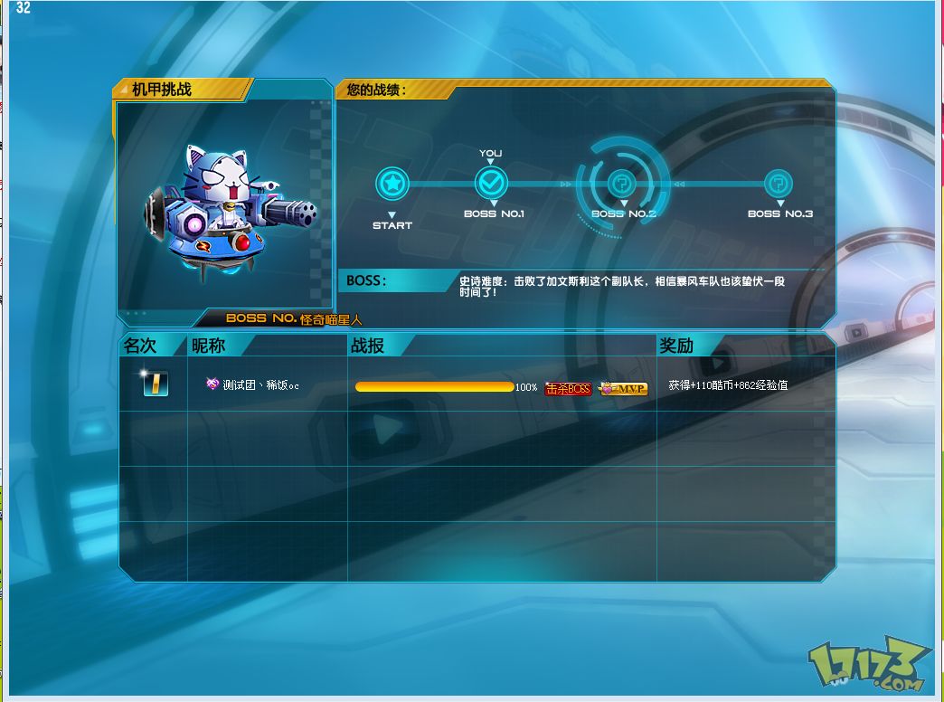 机甲挑战共分三个难度:平民、英雄、史诗。每个难度共三关,每一关均有一个BOSS,开局中使用道具可打败BOSS后通关。(注:使用5213方向键的玩家,需要将↑↓←→恢复默认。否则开局中按住5前进,等同挑衅BOSS,那样会。。。死无全尸阿。亲。)