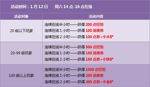 拥有【回归用户】或【超级回归用户】道具的玩家,每天登录游戏后,均可获得一张2小时双倍经验卡。