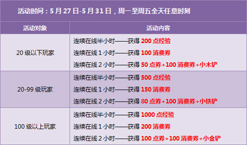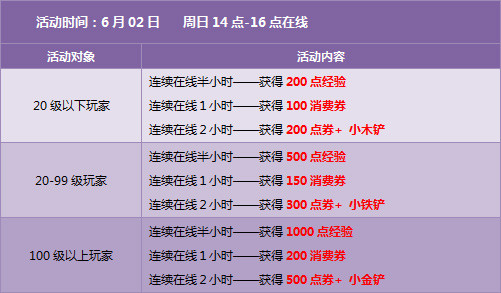 拥有【回归用户】或【超级回归用户】道具的玩家,每天登录游戏后,均可获得一张2小时双倍经验卡。