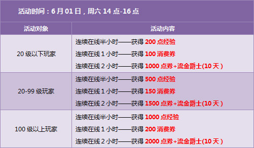 6月1日14:00-16:00,使用10片【伯爵碎片】即可百分百兑换一辆永久的【流金爵士】。不满10片【伯爵碎片】的玩家完成6月1日的连续在线2小时(14:00-16:00)任务可以获得一辆10天的【流金爵士】。