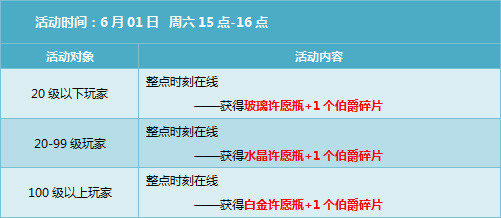 5月周六周日(包括6月1日当天)15点-16点整点在线,每个整点均会获得1片新研制的材料【伯爵碎片】,总共可获得18片【伯爵碎片】。6月1日是研制新型赛车【流金爵士】的日子,仅此一次,错过将再没有机会兑换。