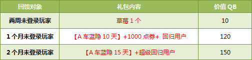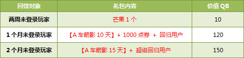 拥有【超级回归用户】道具的玩家,每天完成5局竞速赛,即可获得100点券+200消费券。