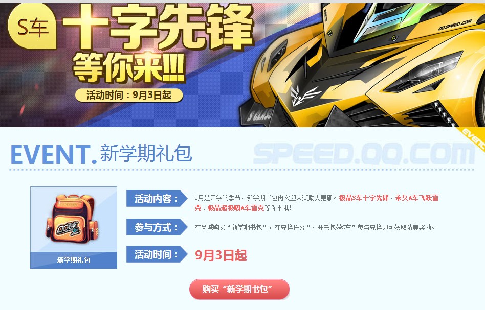 QQ飞车新学期书包奖励大更新 十字先锋等你来