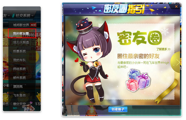 从社交系统可以进入【密友圈】系统