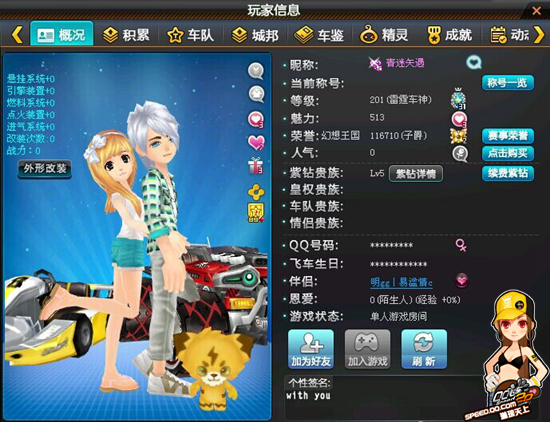 乐乐:我不善于表达,平时游戏中跟朋友一起玩比赛就很开心了。希望飞车越办越好,让更多的人能够体验游戏的快乐。