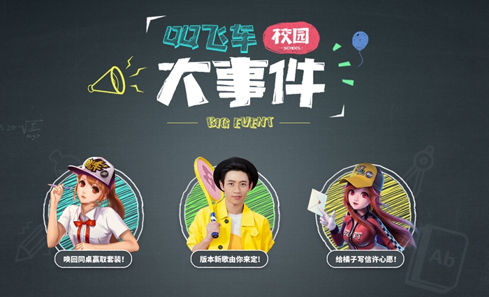 11月20日,《QQ飞车》发布“校园大事件”悬念站。该悬念站运用黑板这一主题元素,再次将大家带回熟悉的校园。同时,魏晨、徐良、崔子格等众多知名明星与大家共同期待“校园大事件”的发生,引发了玩家及各大媒体的期待和猜测。而在今年6月时,《QQ飞车》就曾推出“加速,乐享这一刻”的品牌理念,鼓励玩家抛开生活中的重重压力和烦恼,享受轻松愉悦的时光。“加速,乐享这一刻”品牌站也同样以菁菁校园为背景,运用分享爆笑视频、校园趣事等形式,向玩家传达快乐飞车的正能量。