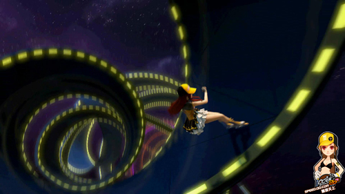 在这一部年度CG的开端,小橘子身着轻盈灵巧的短裙,脚踩造型华丽的轮滑鞋,在绚丽的星空与缓缓转动的摩天轮背景下展开了一段轮滑旅程,跳上赛道中央的栏杆障碍进行一段滑行,随后进入一段螺旋赛道,展开一段头晕目眩的360度旋转滑行。