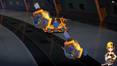 CG中小橘子的赛车也与以往大不相同,它拥有了超强导弹定位、赛车变形、导弹发射以及更加强大的漂移功能,小橘子凭借着这辆赛车最终击败了邪恶机甲,露出了胜利的微笑。