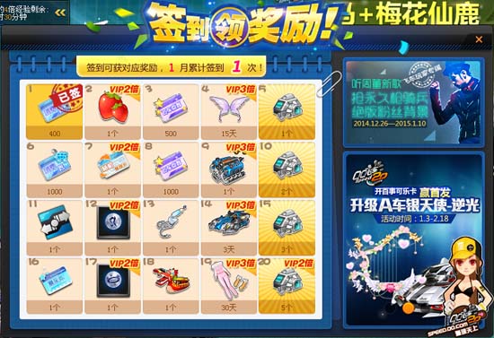 新年新气象,签到领奖励,飞车有好礼,赶紧来参与!