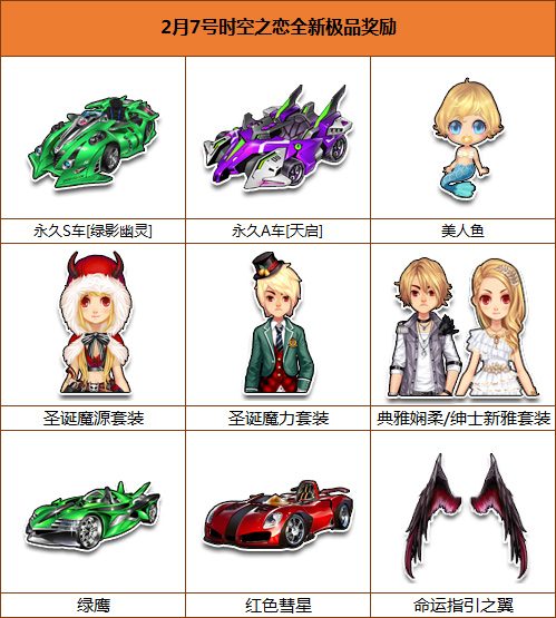 同时2016年1月26日和2016年2月7日,时空之恋模式宝箱奖励全新进化,小伙伴们通过完成【时空之恋】模式开启模式内宝箱将会获得更好的奖励!!