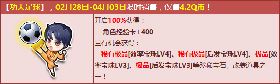 开学狂欢不停歇,四级宝石惊喜不停送!2月28日-4月3日期间,【功夫足球】限时上架,稀有极品【效率宝珠LV4】、【后发宝珠LV4】等珍稀宝石、改装道具限时放送,身为改装达人的你不容错过啦!