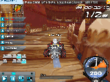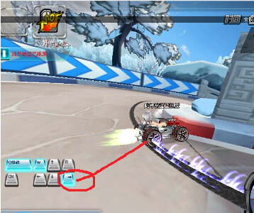 确实是比较悲剧的。 当然如果这时候被撞的是我们,我们可以点下漂移键,然后小飘把气聚满再放气追上去,利用落后补偿还是有机会的。其实撞人的本质都是差不多的。 不过我觉得要在对自身影响不大的状态下去撞人,这才是最好的。 试想,就算你撞到了人,可是人家还是跑在你前面。这又有什么意义呢,接下来就是抓地状态下的撞人。其实和上面差不多,撞人的本质都是一样的,废话不多说,上图。