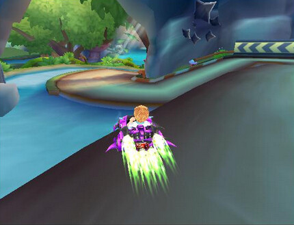 4、如图,在这个地方可以飞跃河面而尽快的追上他人或者远离他人,注意找好赛车的飞跃点,控制好车头