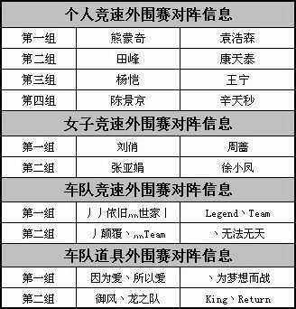 与以往相同的是,本次比赛选手对阵表仍采取随机抽签的形式产生。在男子竞速赛中,作为电信区积分排行榜的冠亚军的熊蒙奇、袁浩森,首轮将上演强强对决;而第二组中,SSC两大悍将田峰与康天泰随后争雄。车队竞速赛中,新生车队的碰撞与老牌战队的争霸轮番开战。同时,更多的新生代面孔不断的在车队道具赛与女子个人竞速赛中涌现出来。新星辈出的SSC战场中,选手们微弱的实力差距下,更多是对心理状态的考验。